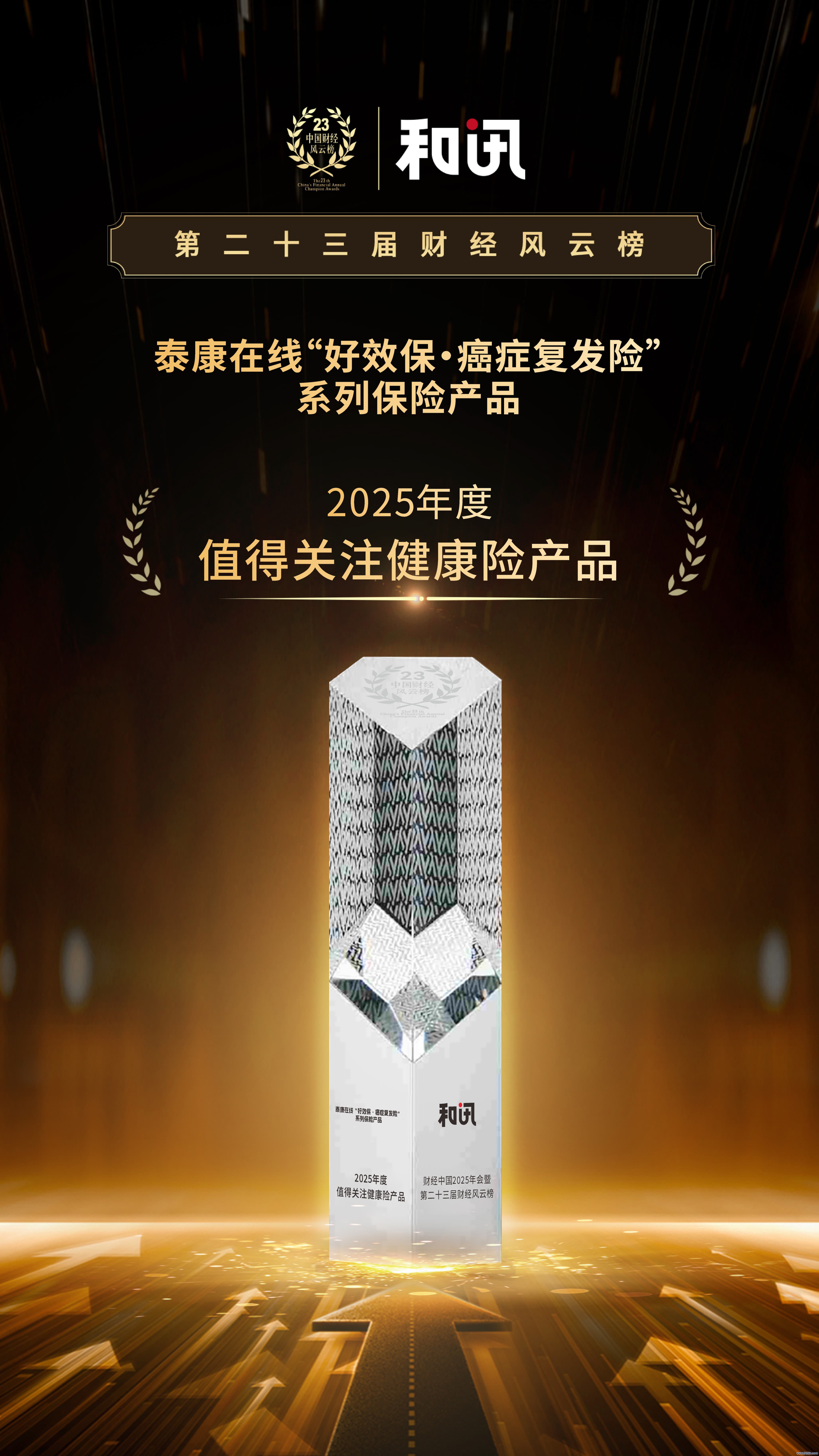 12月7日,由联办集团、和讯调处主理,财经中国会经办的「财经中国2025年会暨第23届财经风浪榜」,以“寻找中国经济破局之路”为主题,推出了引颈金融业进取、向善发展的标杆金融机构名单,泰康在线“好效保·癌症复发险”系列保障产物得到“2025年度值得护理健康险产物”。